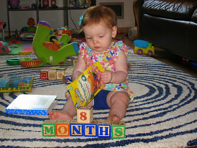 she definitely likes Elmo. But she LOVES Grover. And what you can't see in these pictures is the shrieks and pants. Apparently we've been holding out on the kid.